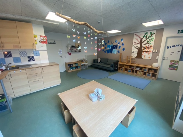 Vier Gruppen mit je zehn Kindern im Alter von ein bis drei Jahren und 15 Erzieherinnen und Erzieher sowie pädagogische Fachkräfte – das ist unsere Kita. Unsere Ziele sind Kinder liebevoll zu begleiten und zu fördern, Familien zu unterstützen und Begegnungsmöglichkeiten zu schaffen. Wichtig ist uns, dass die Kinder in ihrem Tagesablauf immer wiederkehrende Elemente und Rituale finden und gleichzeitig Raum für freies Spielen, Bewegung und Entdecken haben. Die gemeinsamen Mahlzeiten und der Mittagsschlaf in den einzelnen Gruppen sind fest in den Tagesablauf integriert.